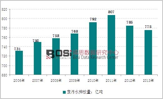 由博思数据发布的《2016-2022年中国工业污水处理行业市场分析与投资前景研究报告》表明:2013年,全国废水排放量695.4亿吨,比上年增加1.5%。工业废水排放量209.8亿吨,比上年减少5.3%;占废水排放总量的30.2%,比上年减少2.1个百分点。城镇生活污水排放量485.1亿吨,比上年增加4.8%;占废水排放总量的69.8%,比上年增加2.2个百分点。